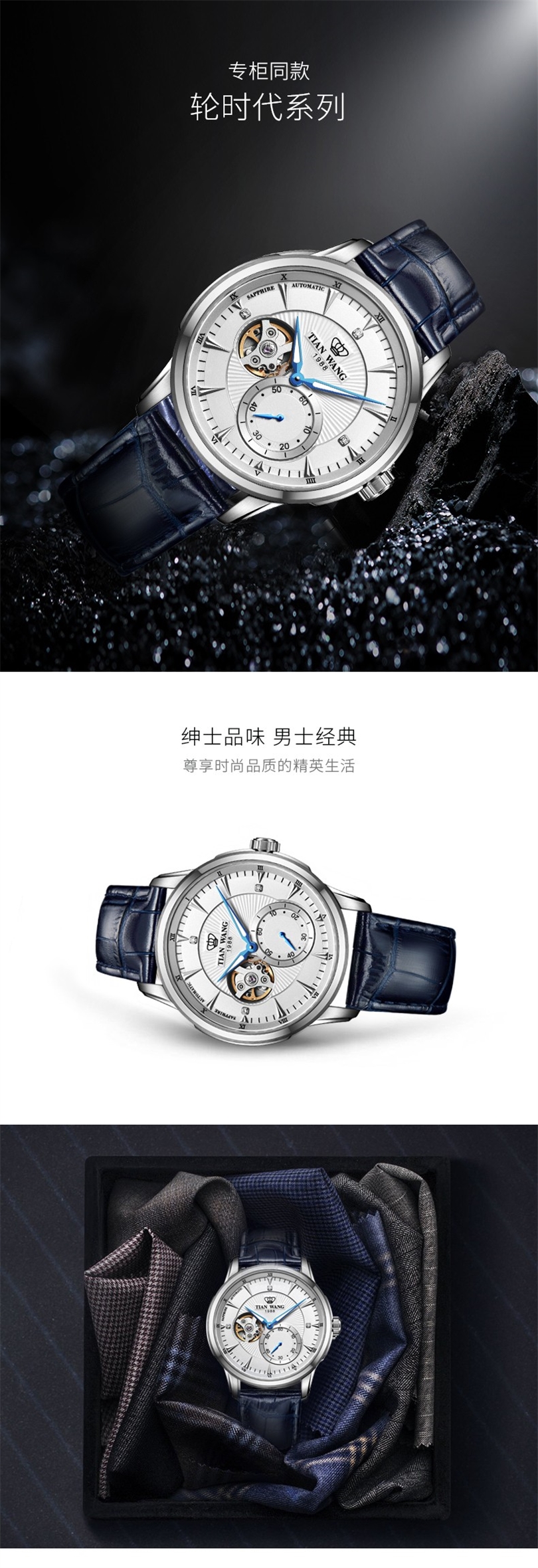 轮时代系列男士商务休闲皮带机械腕表