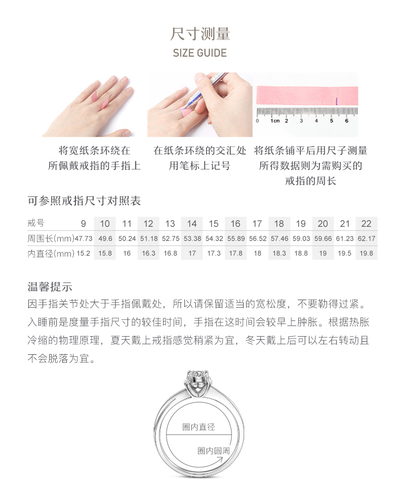 | E.缩放范围:±1号内。修改对象不包含群镶款、排钻款、条戒(车花戒)等戒指,具体情况请咨询体验中心珠宝顾问。 | |